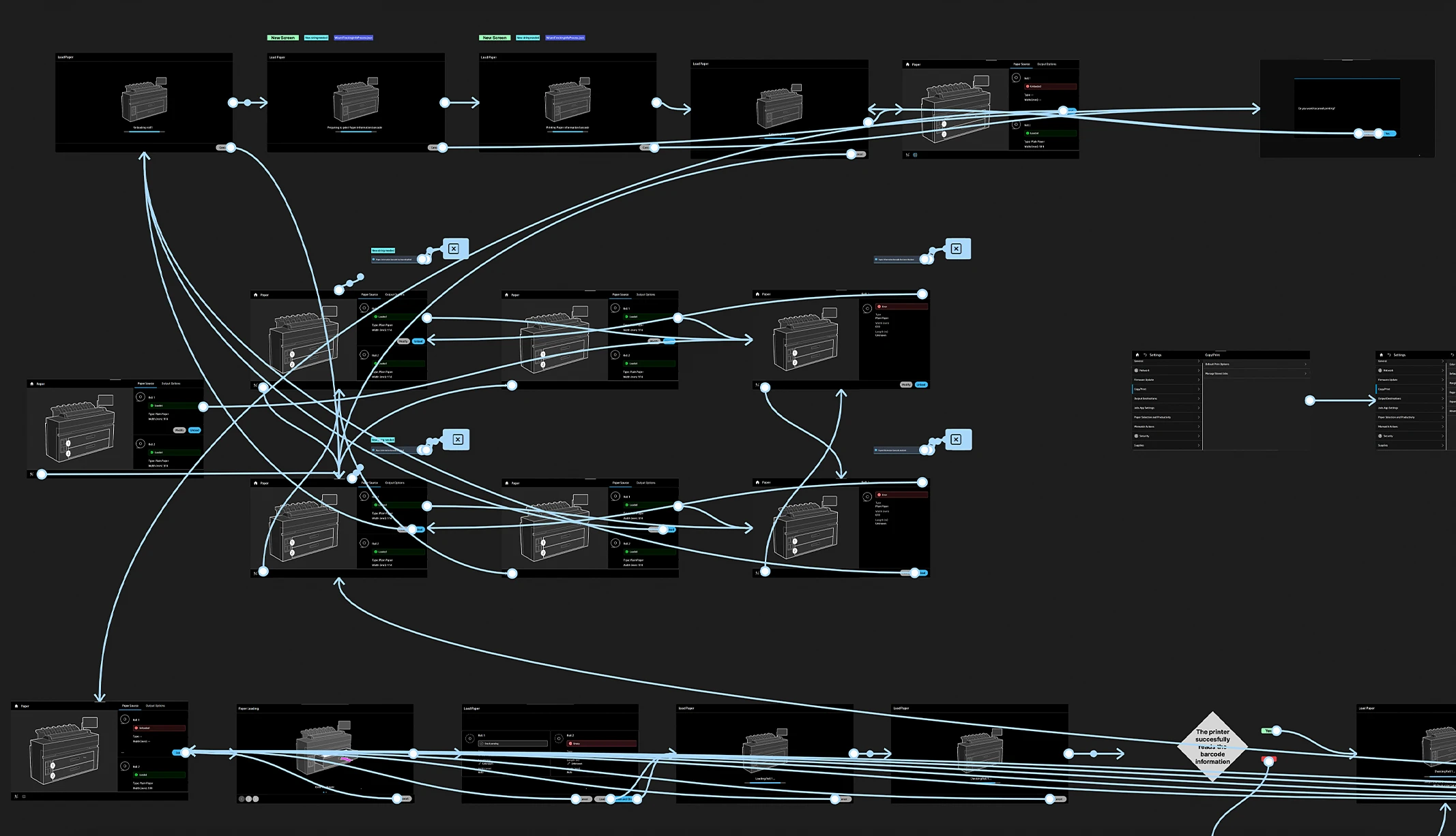 I analyze and define any new steps in the user flow to improve the interaction with the printer and pinpoint inefficiencies in the workflow. The objective is to identify redundant steps, complex sequences, and areas where users may encounter friction.